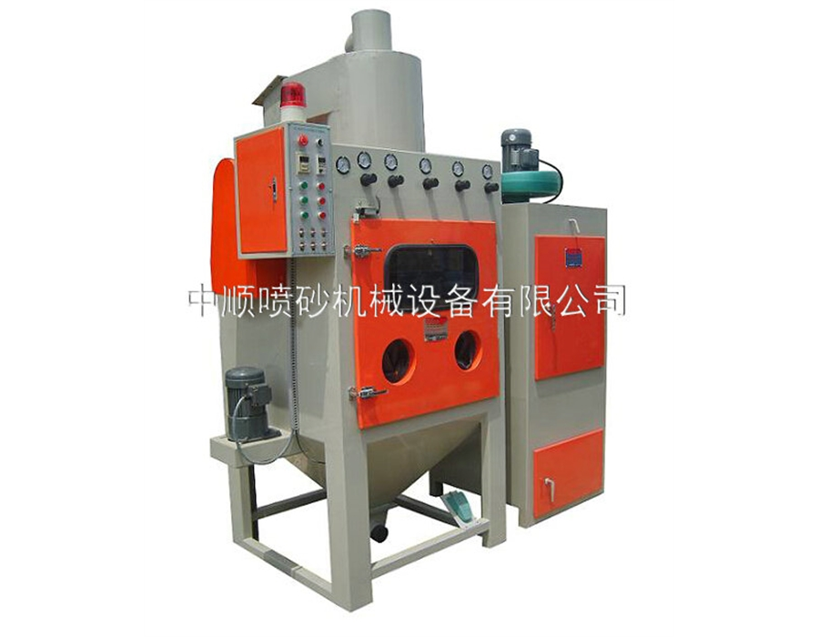 2、轉(zhuǎn)盤具有360。自動(dòng)旋轉(zhuǎn),速度可用電動(dòng)調(diào)速,加快加工速度,較易控制噴砂品質(zhì)。